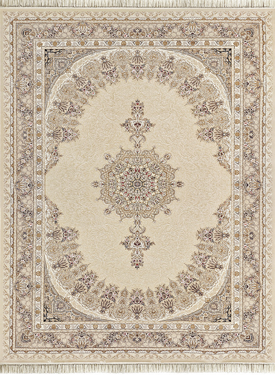 فرش داریوش 1200 شانه کلکسیون گل ابریشم کد 1202 زمینه کرم (برجسته)