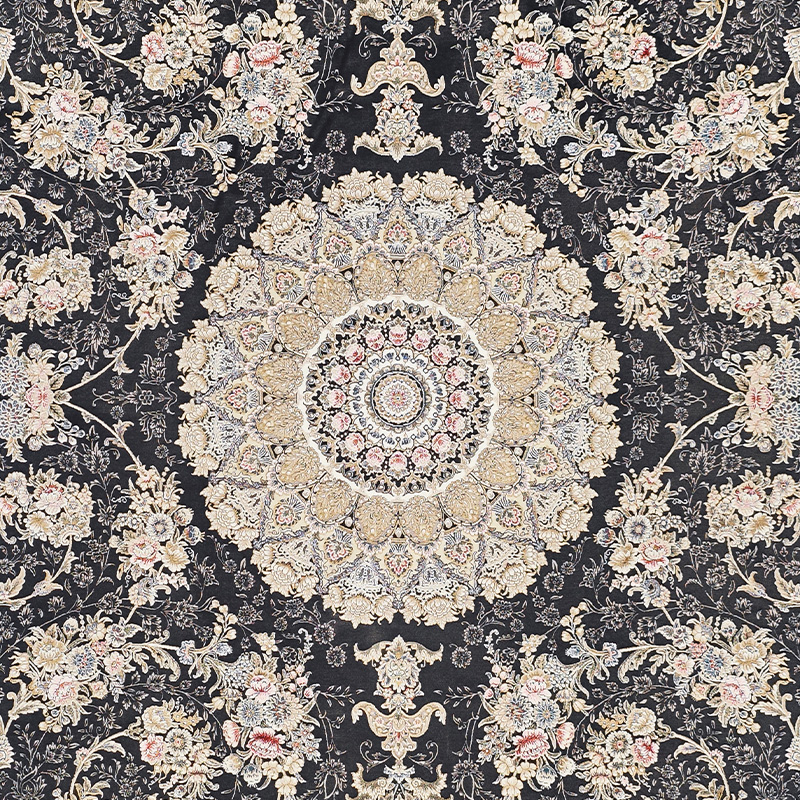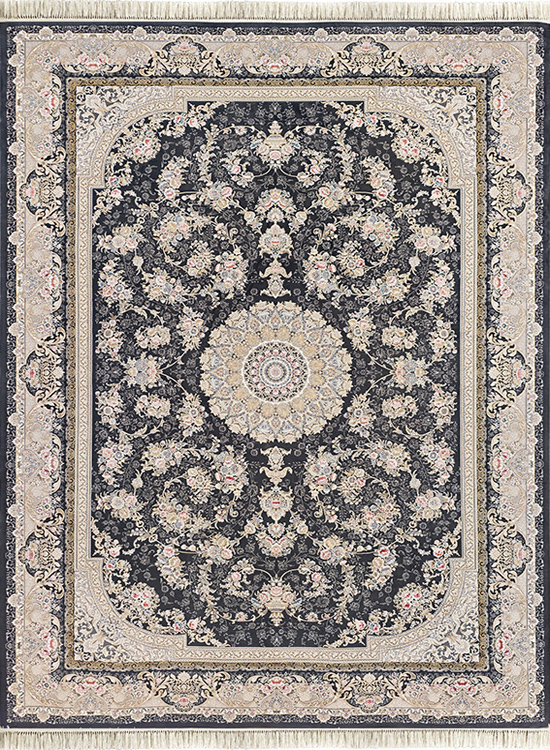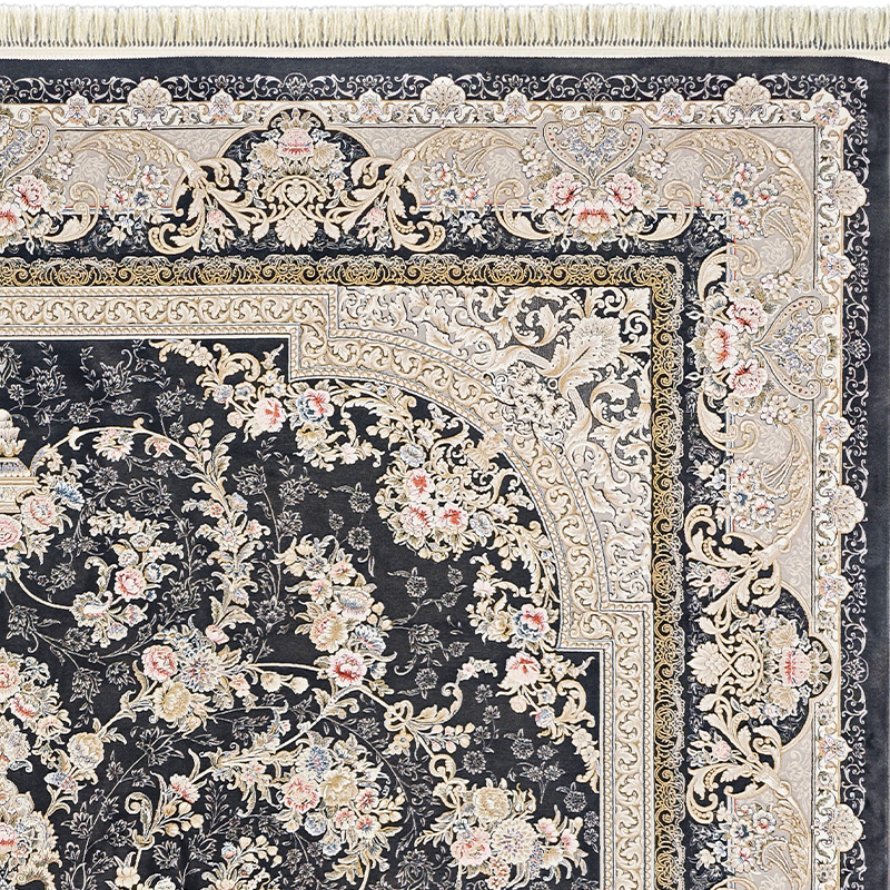 فرش داریوش 1200 شانه کلکسیون گل ابریشم کد 1203 زمینه دودی (برجسته)