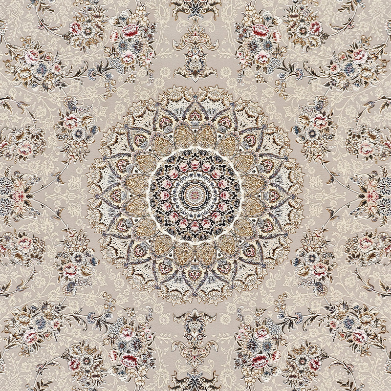 در نگاه نخست، فرش داریوش کاشان گل ابریشم، نمایی چشمنواز از هنر سنتی و طراحی مدرن را در ذهن تداعی میکند. نقوش ظریف گلها، برگها و لچک و ترنج کلاسیک ایرانی با ترکیبی از رنگهای آرامشبخش مانند کرم، نقرهای، فیلی، طوسی روشن، نسکافهای و سرمهای، هارمونی دلنشینی ایجاد میکنند.