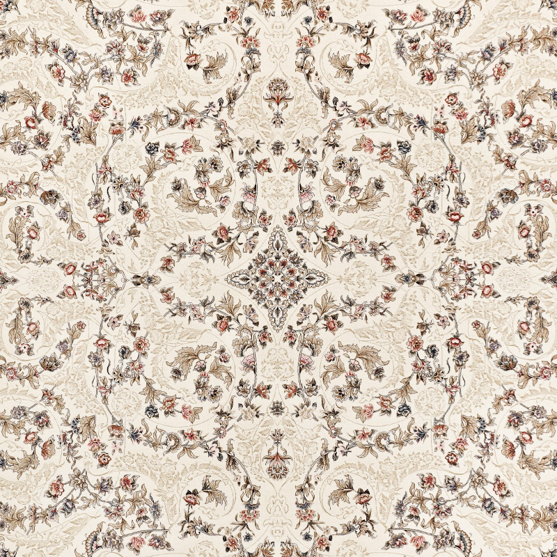 در نگاه نخست، فرش داریوش کاشان گل ابریشم، نمایی چشمنواز از هنر سنتی و طراحی مدرن را در ذهن تداعی میکند. نقوش ظریف گلها، برگها و لچک و ترنج کلاسیک ایرانی با ترکیبی از رنگهای آرامشبخش مانند کرم، نقرهای، فیلی، طوسی روشن، نسکافهای و سرمهای، هارمونی دلنشینی ایجاد میکنند.