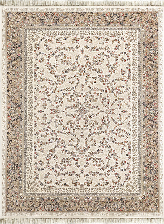 فرش داریوش 1200 شانه کلکسیون گل ابریشم کد 1205 زمینه سفید (برجسته)