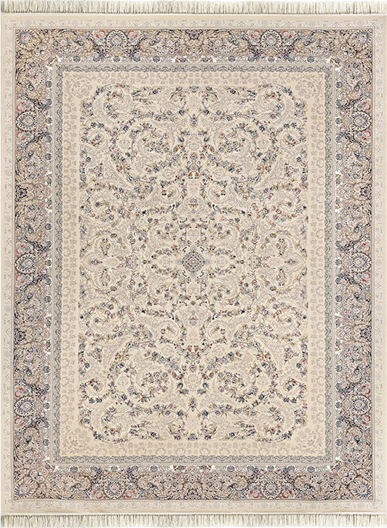 فرش داریوش 1200 شانه کلکسیون گل ابریشم کد 1205 زمینه کرم (برجسته)