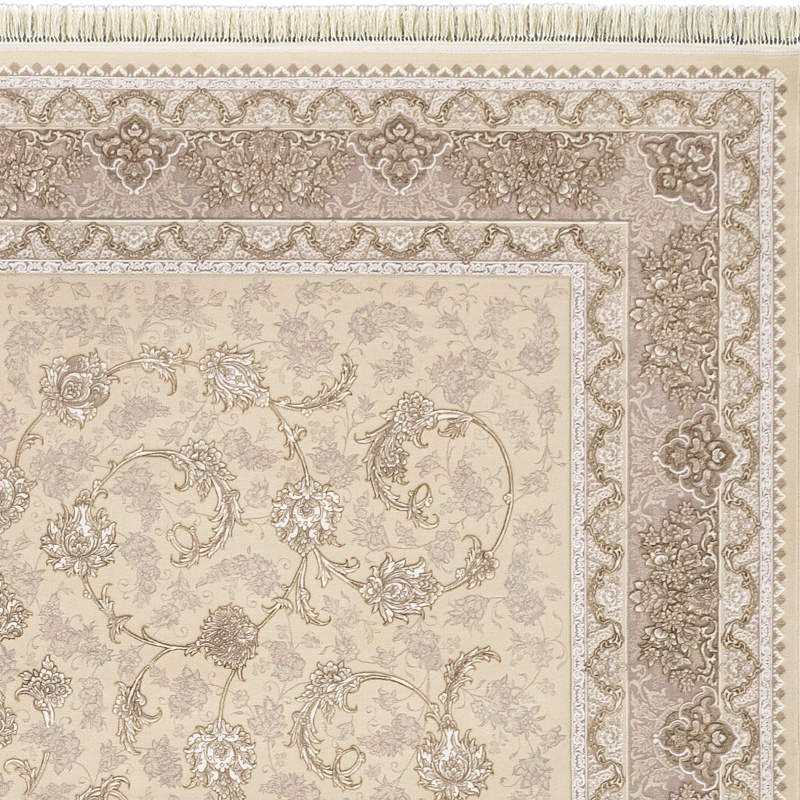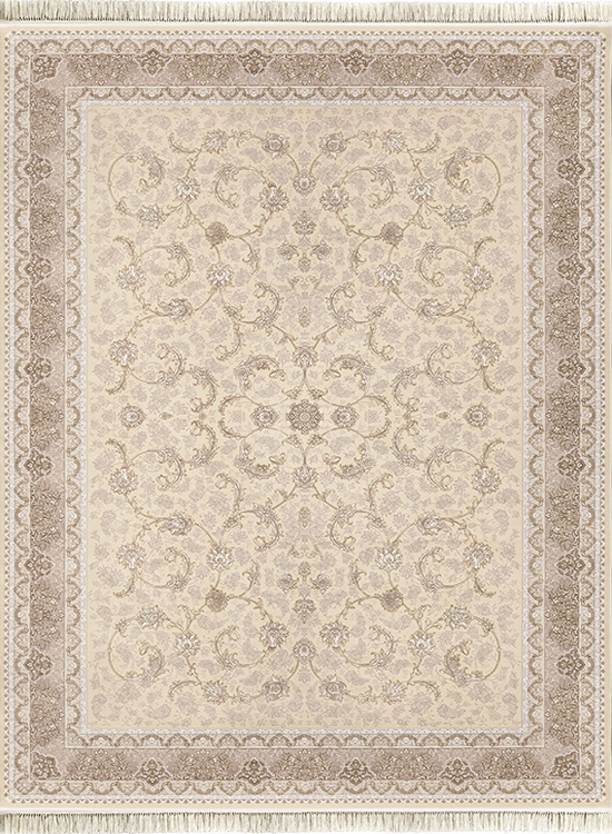 فرش داریوش 1200 شانه کلکسیون گل ابریشم کد 1209 زمینه کرم گلد (برجسته)