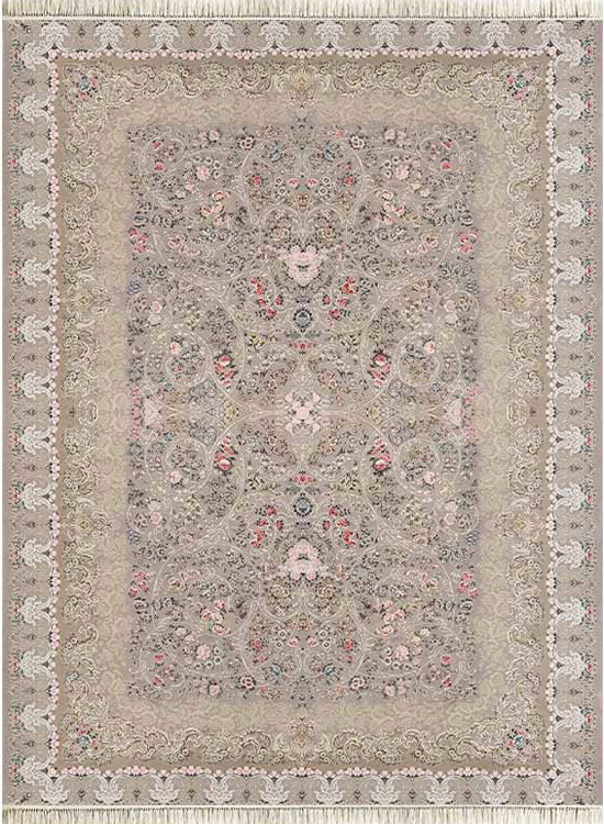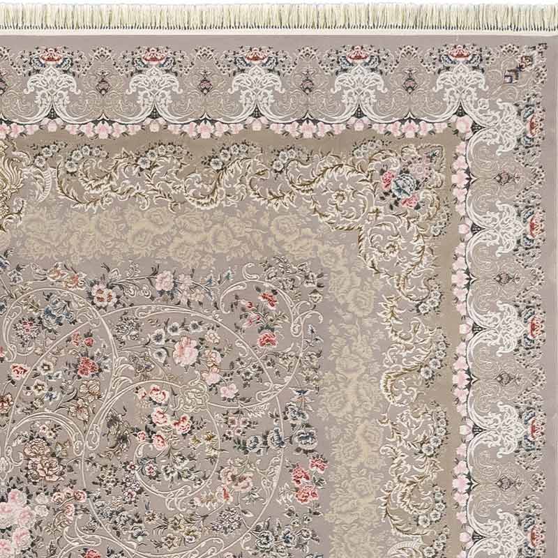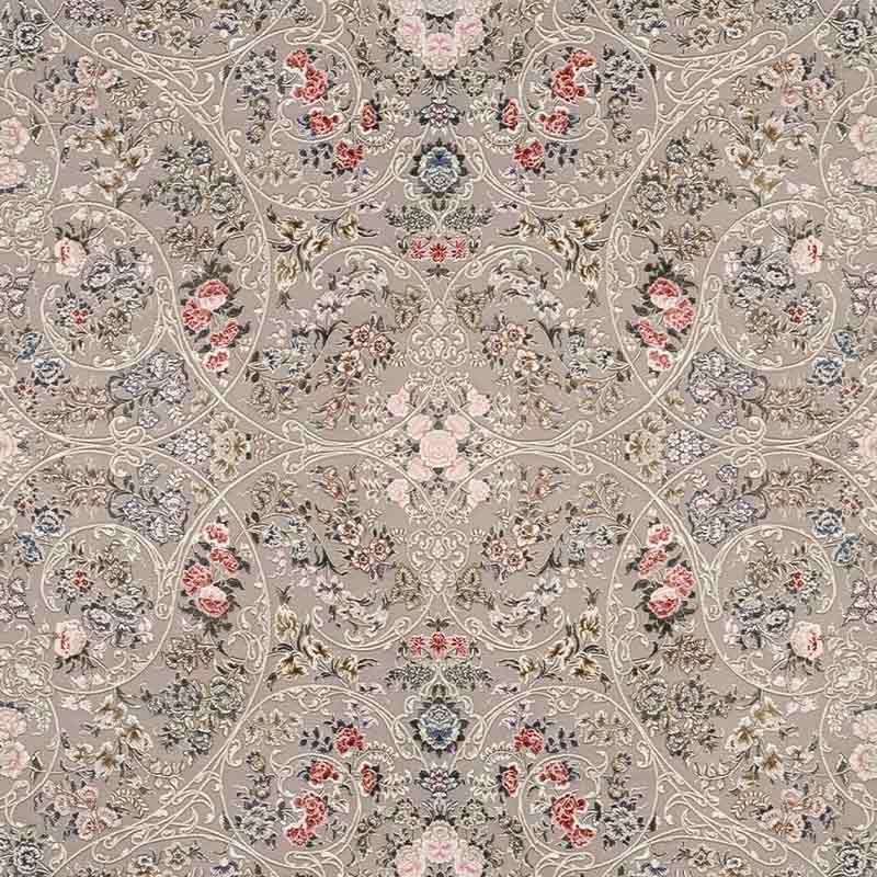 فرش داریوش 1200 شانه کلکسیون گل ابریشم کد 1219 زمینه فیلی (برجسته)
