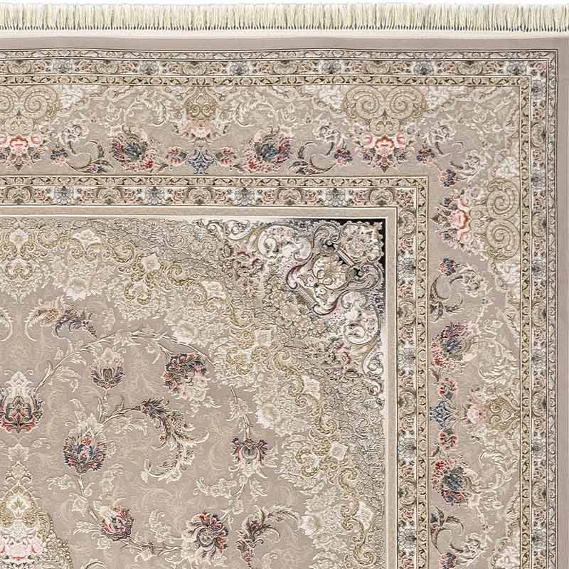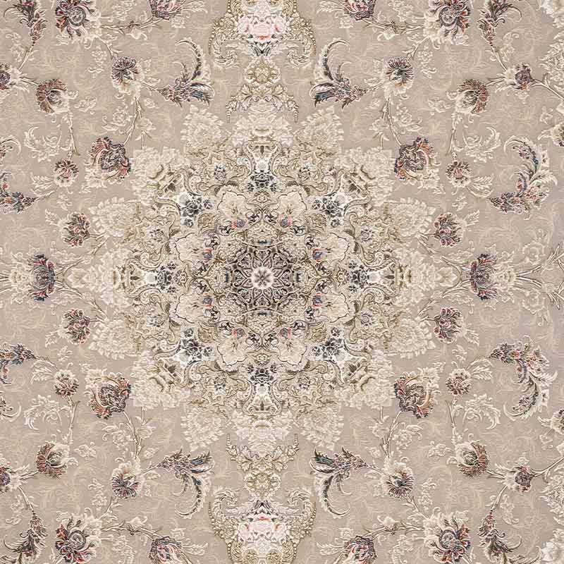 فرش داریوش 1200 شانه کلکسیون گل ابریشم کد 1220 زمینه فیلی (برجسته)