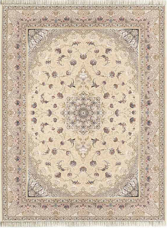 فرش داریوش 1200 شانه کلکسیون گل ابریشم کد 1220 زمینه کرم (برجسته)