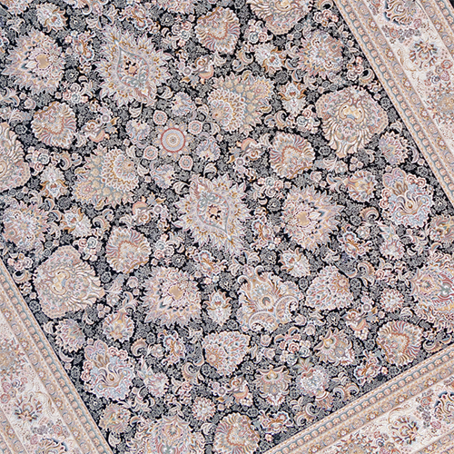 - بافت ریزبافت برجسته دستبافتگونه: شانه ۱۵۰۰ + تراکم ۴۵۰۰ = بیش از ۲.۵ میلیون گره در مترمربع، ارتفاع خاب ۶-۸ میلیمتر برای جلوه سهبعدی روان و مقاومت بالا.