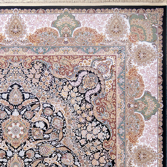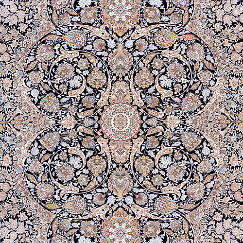 - بافت ریزبافت برجسته دستبافتگونه: شانه ۱۵۰۰ + تراکم ۴۵۰۰ = بیش از ۲.۵ میلیون گره در مترمربع، ارتفاع خاب ۶-۸ میلیمتر برای جلوه سهبعدی روان و مقاومت بالا.