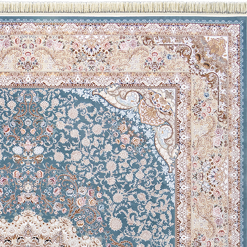 - بافت ریزبافت برجسته دستبافتگونه: شانه ۱۵۰۰ + تراکم ۴۵۰۰ = بیش از ۲.۵ میلیون گره در مترمربع، ارتفاع خاب ۶-۸ میلیمتر برای جلوه سهبعدی و دوام بالا.