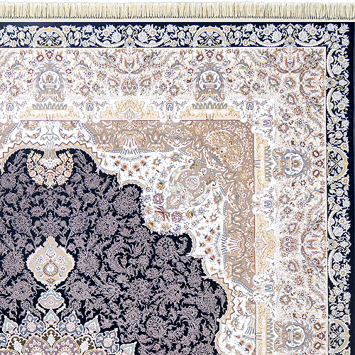 فرش داریوش 1500 شانه کلکسیون مینیاتور کد D1539 زمینه سورمه ای (برجسته)