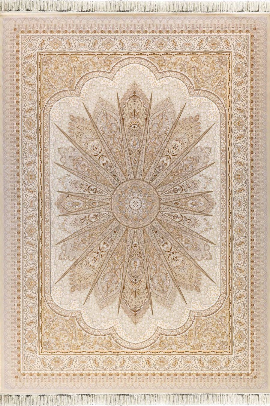 فرش داریوش 1500 شانه کد D1560 زمینه کرم-طلایی (برجسته)