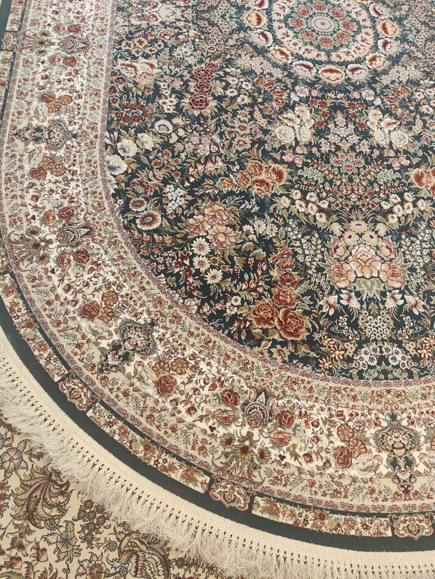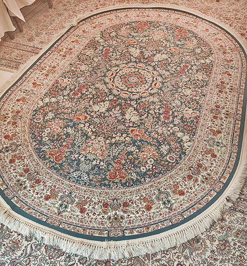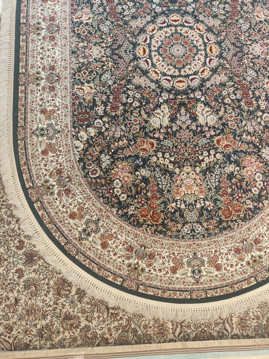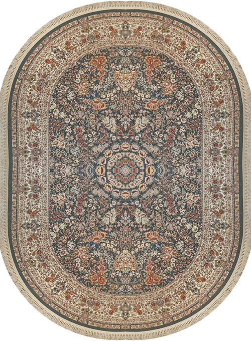 فرش دیوان بیضی 1200 شانه کد 1000 زمینه دودی-سبز (برجسته)