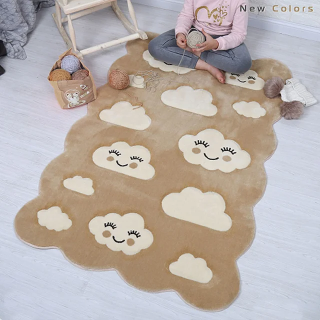 فرش زرباف سه بعدی پرزبلند طرح آسمون زمینه شکلاتی (شگی)