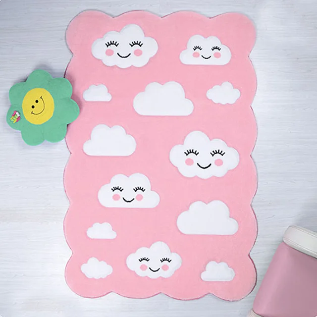 فرش زرباف سه بعدی پرزبلند طرح آسمون زمینه صورتی (شگی)