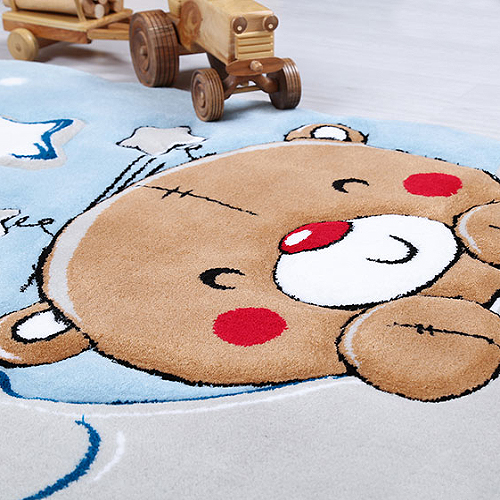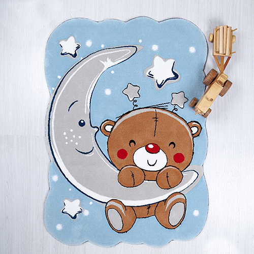 فرش زرباف سه بعدی پرزبلند طرح خرس و ماه زمینه آبی (شگی)