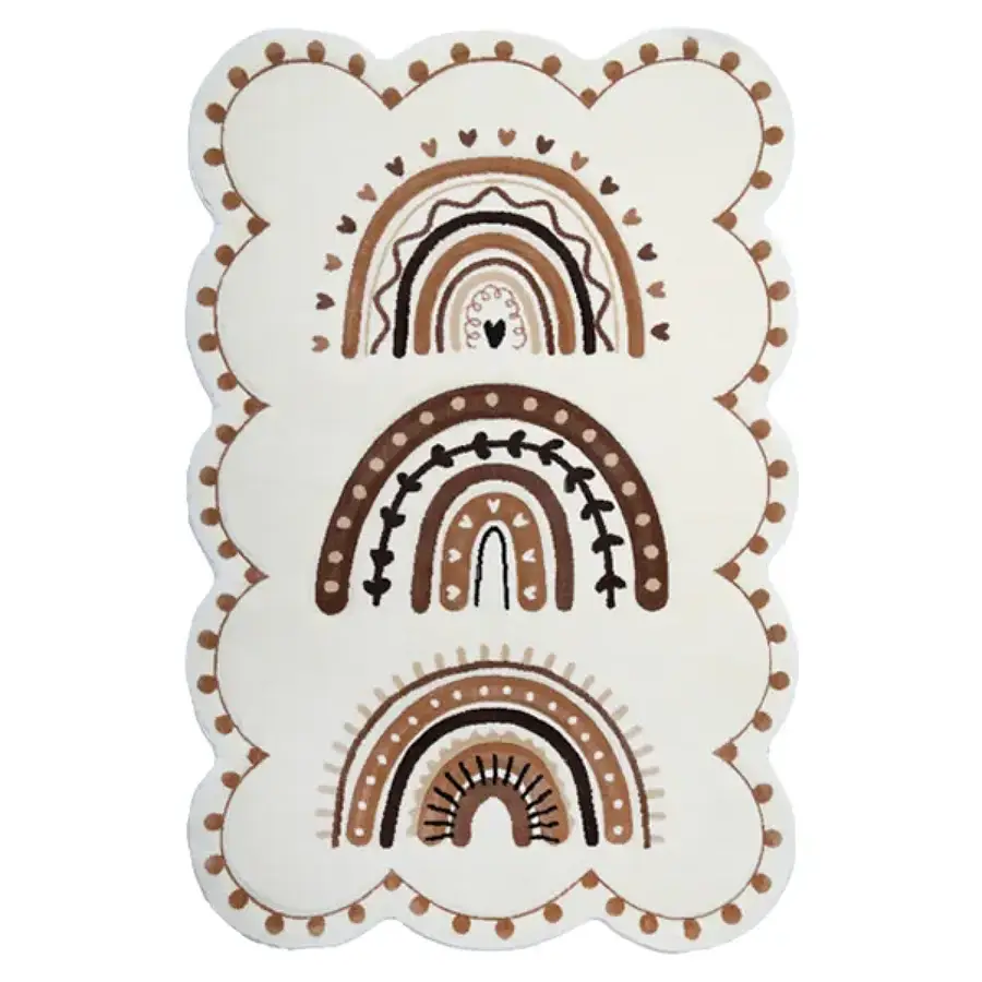 فرش زرباف سه بعدی پرزبلند طرح رنگین کمان زمینه شکلاتی (شگی)
