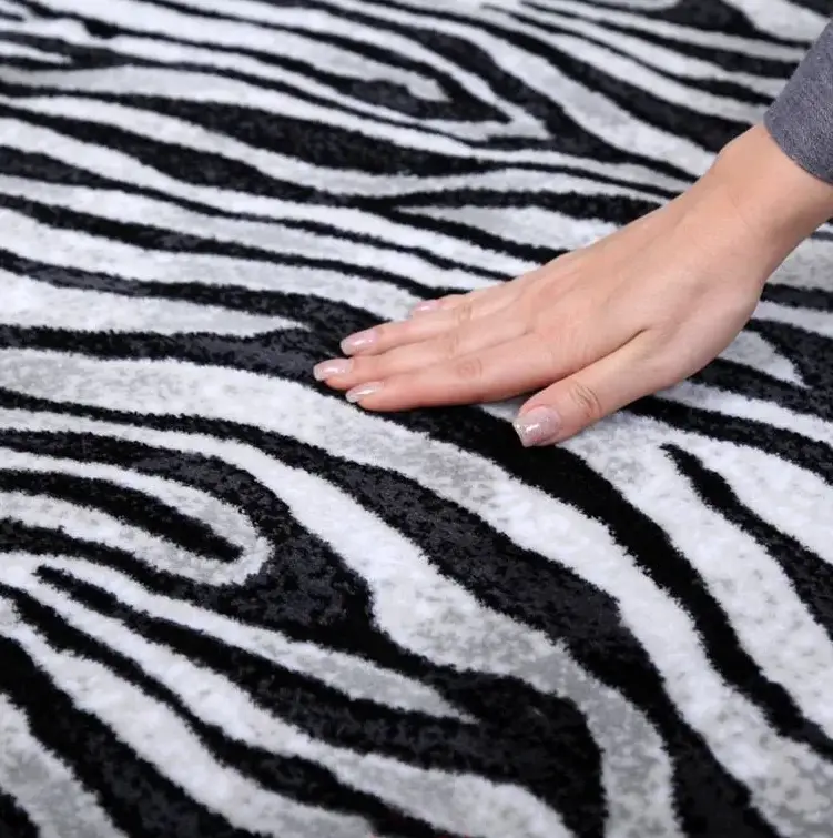 فرش زرباف سه بعدی پرزبلند طرح زبرا زمینه طوسی (شگی)