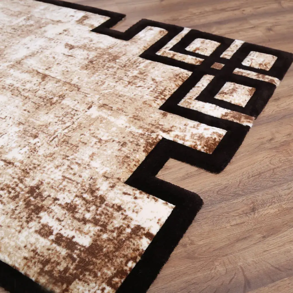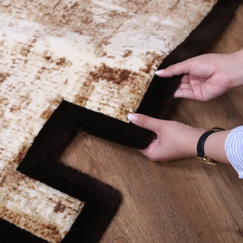 فرش زرباف سه بعدی پرزبلند طرح فلورانس زمینه شکلاتی (شگی)