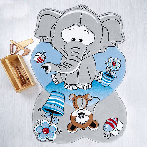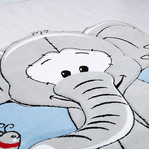 فرش زرباف سه بعدی پرزبلند طرح فیل و فنجون زمینه طوسی (شگی)