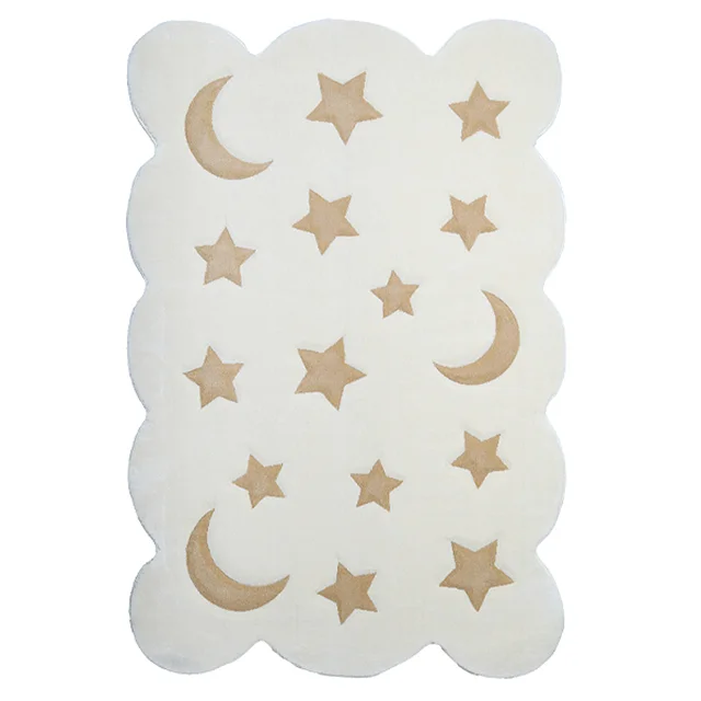 فرش زرباف سه بعدی پرزبلند طرح ماه و ستاره زمینه شکلاتی (شگی)