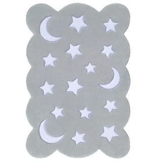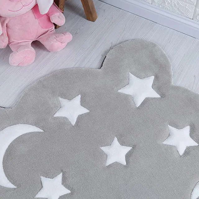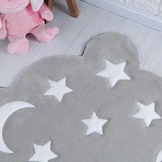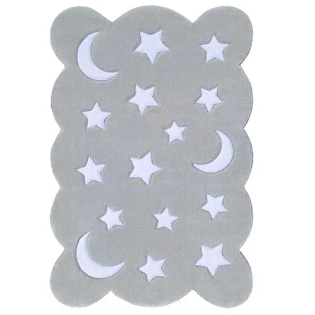 فرش زرباف سه بعدی پرزبلند طرح ماه و ستاره زمینه طوسی (شگی)