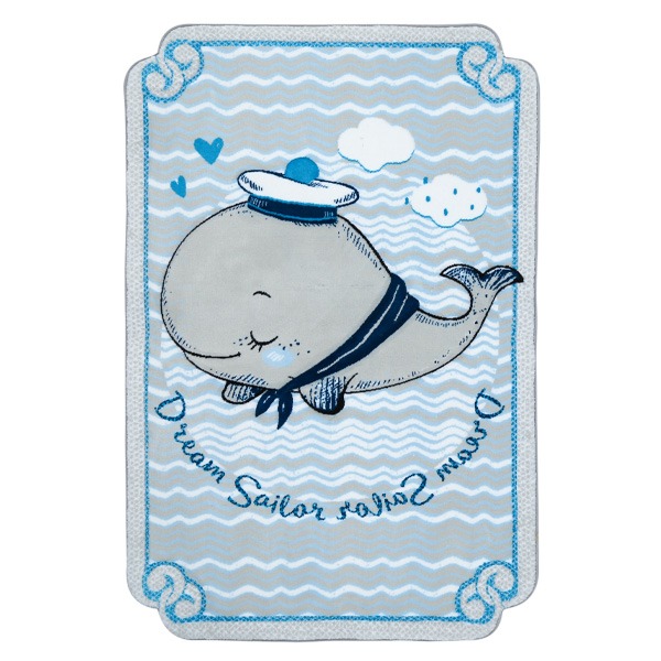 فرش زرباف سه بعدی پرزبلند طرح نهنگ زمینه آبی (شگی)