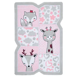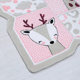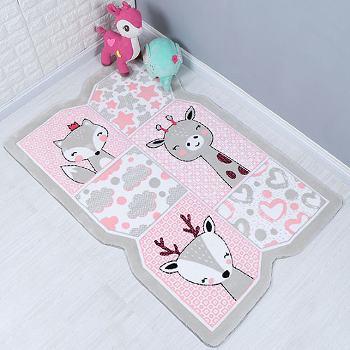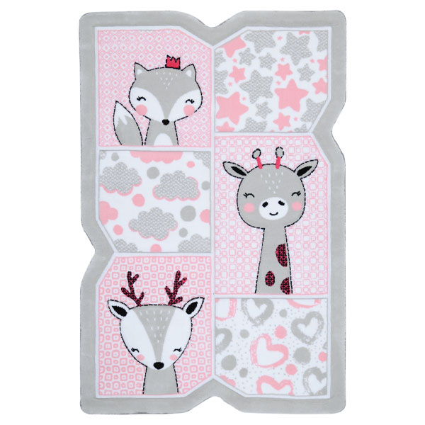 فرش زرباف سه بعدی پرزبلند طرح هپی زو زمینه صورتی (شگی)