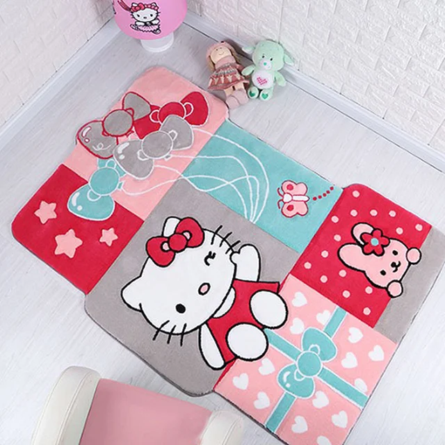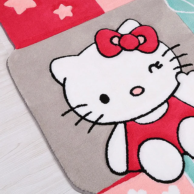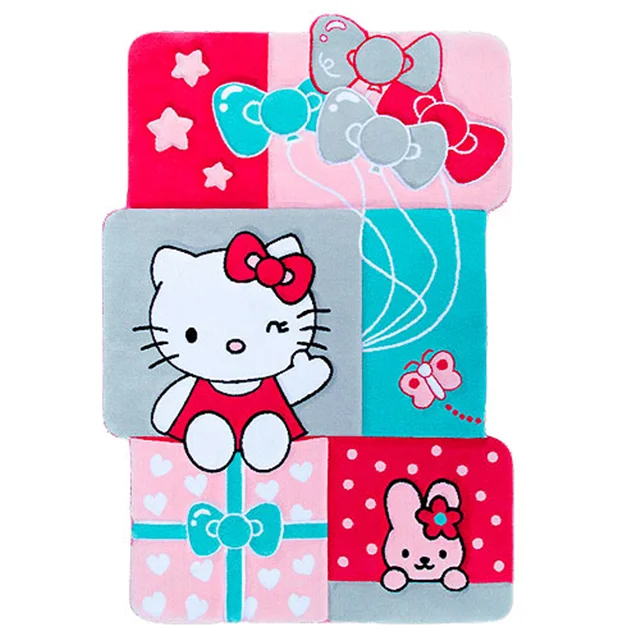 فرش زرباف سه بعدی پرزبلند طرح هپی کیتی زمینه صورتی (شگی)