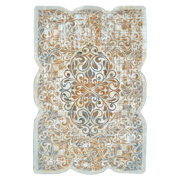 فرش زرباف سه بعدی پرزبلند طرح پالیز زمینه طوسی کرم (شگی)