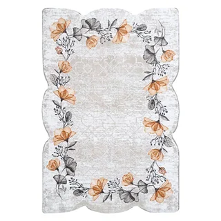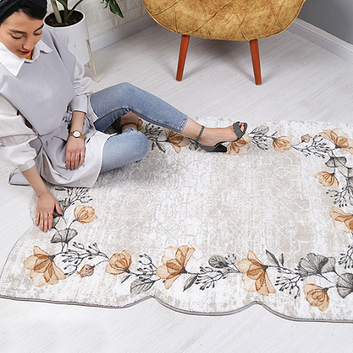 فرش زرباف سه بعدی پرزبلند طرح پردیس زمینه طوسی کرم (شگی)