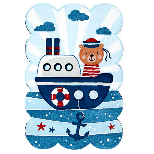 فرش زرباف سه بعدی پرزبلند طرح کشتی زمینه آبی (شگی)