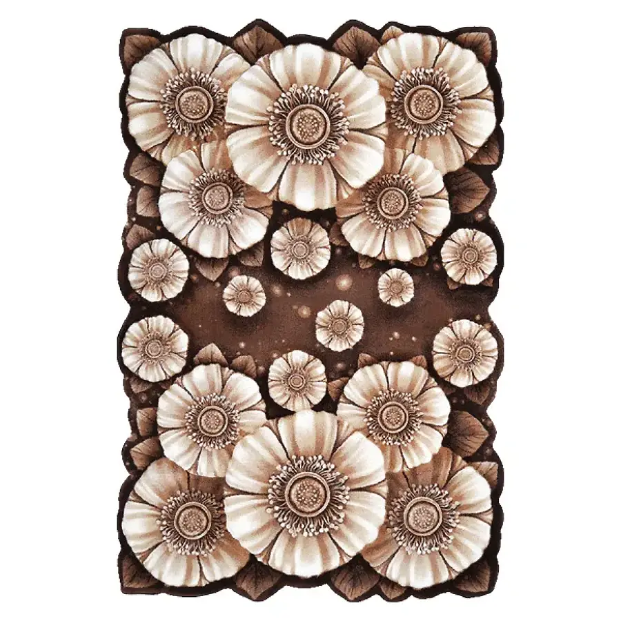 فرش زرباف سه بعدی پرزبلند طرح گلوریا زمینه شکلاتی (شگی)