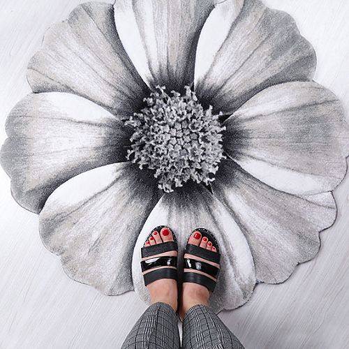 فرش زرباف سه بعدی پرزبلند طرح گلپر زمینه طوسی (شگی)