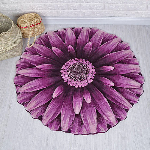 فرش زرباف سه بعدی پرزبلند طرح گل داوودی زمینه بنفش (شگی)