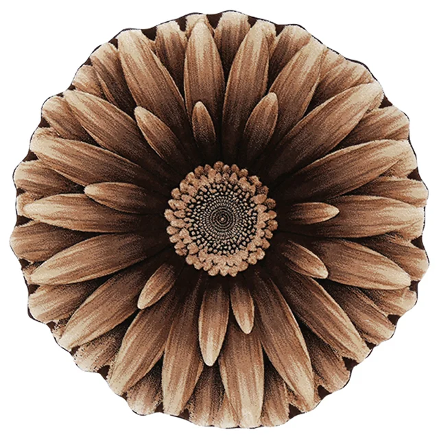 فرش زرباف سه بعدی پرزبلند طرح گل داوودی زمینه شکلاتی (شگی)