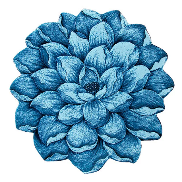 فرش زرباف سه بعدی پرزبلند طرح گل نیلوفر زمینه آبی (شگی)
