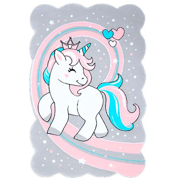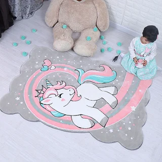 فرش زرباف سه بعدی پرزبلند طرح یونیکورن زمینه طوسی (شگی)