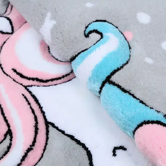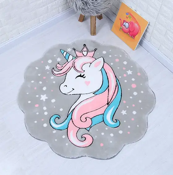 فرش زرباف سه بعدی پرزبلند طرح یونیکورن زمینه طوسی (شگی)