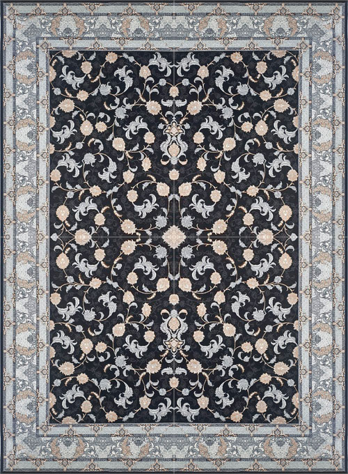 فرش ستاره پانیذ 700 شانه تماشا زمینه سورمه ای طلا کوب (غیربرجسته)