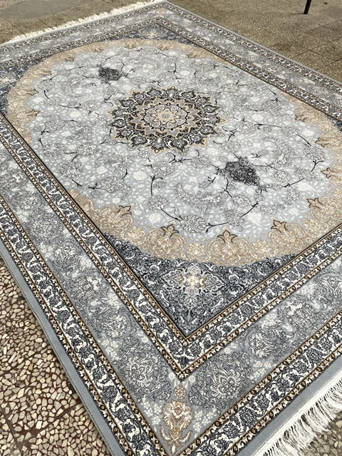 فرش ستاره پانیذ 700 شانه طرح اصفهان زمینه نقرهای طلاکوب(غیربرجسته)