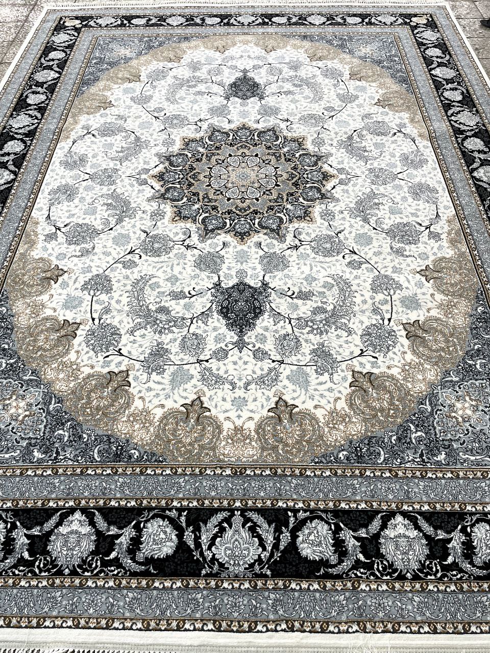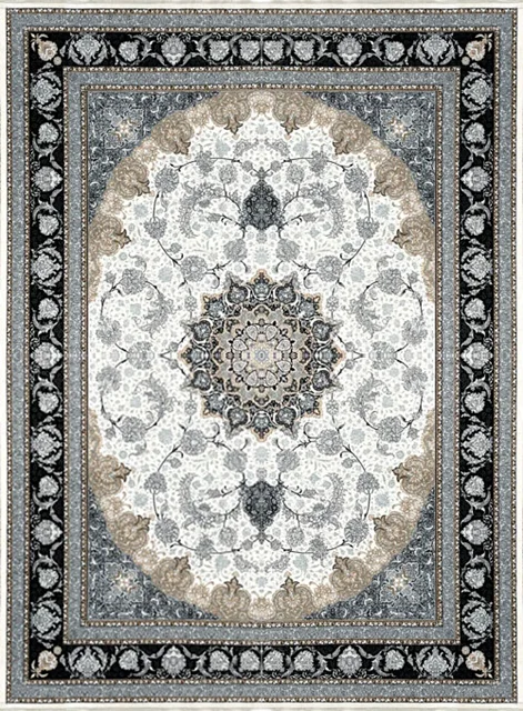 فرش ستاره پانیذ 700 شانه طرح اصفهان زمینه کرم طلاکوب (غیربرجسته)