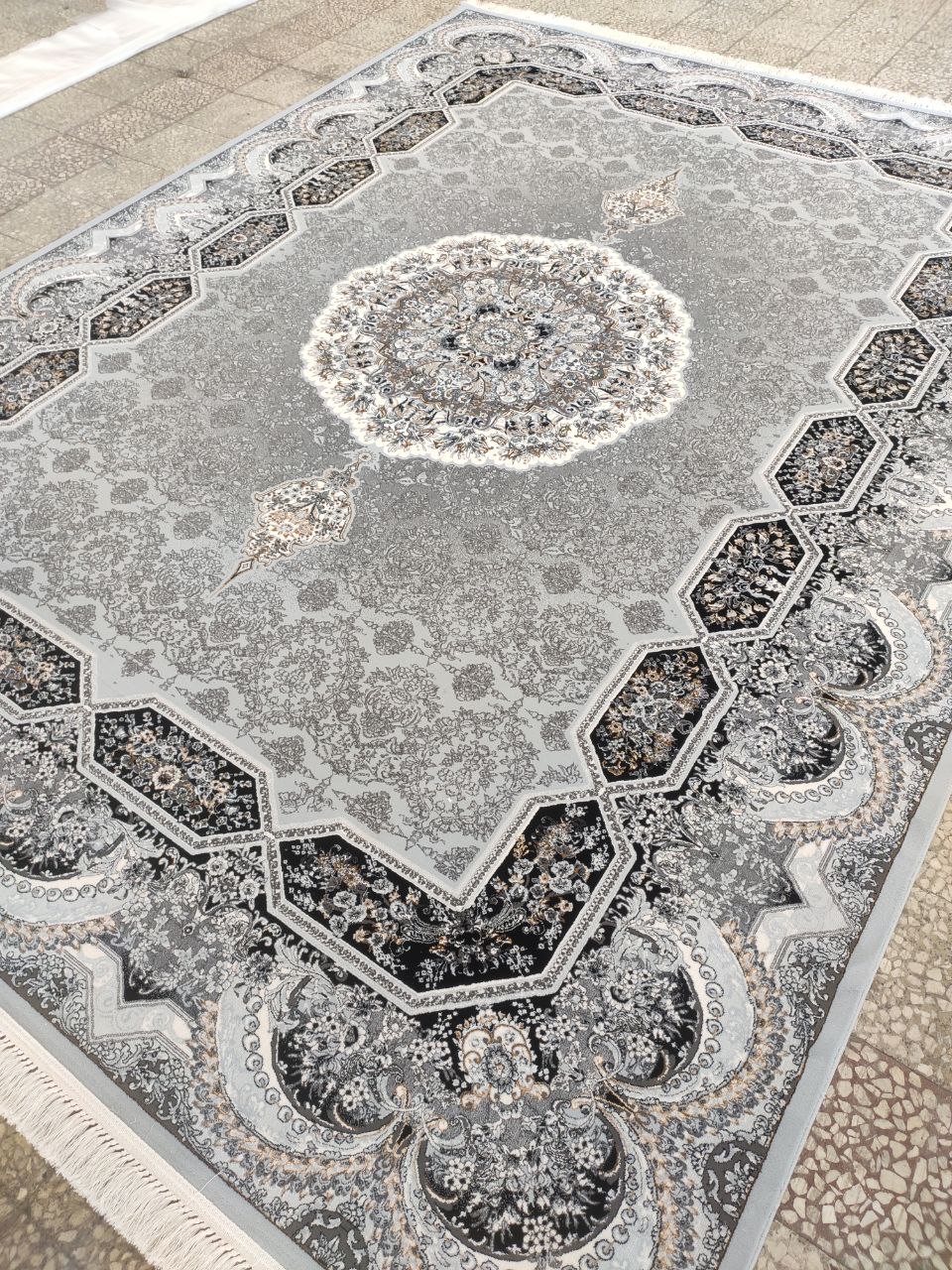 فرش ستاره پانیذ 700 شانه طرح هالیدی زمینه نقره ای (غیربرجسته)