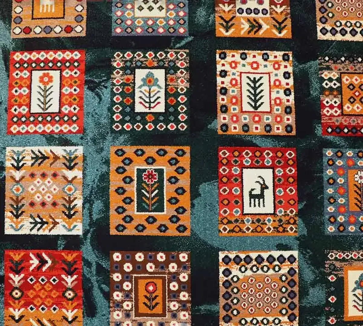 فرش ستاره کویر یزد کلکسیون شاهسون کد SH-B072-9073 زمینه سبز تیره (غیربرجسته)