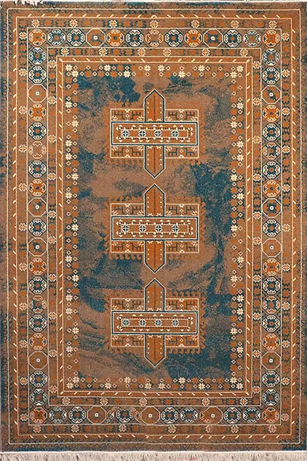 فرش ستاره کویر یزد کلکسیون شاهسون کد SH-B101-9013 زمینه شکلاتی (غیربرجسته)