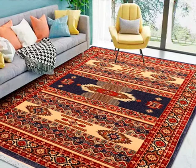 فرش ستاره کویر یزد گبه کد SH-B001-5170 زمینه سورمه ای (غیربرجسته)