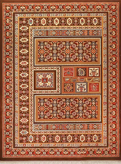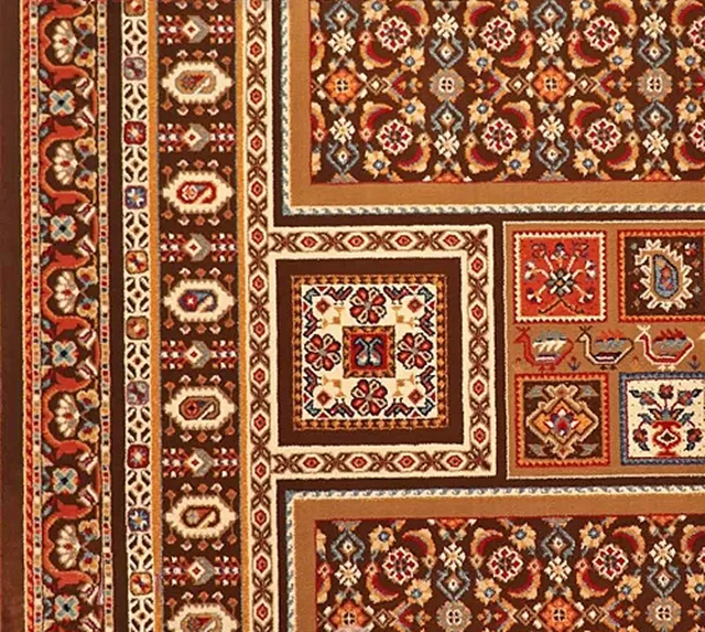 فرش ستاره کویر یزد گبه کد SH-b017-5180 زمینه قهوه ای (غیربرجسته)