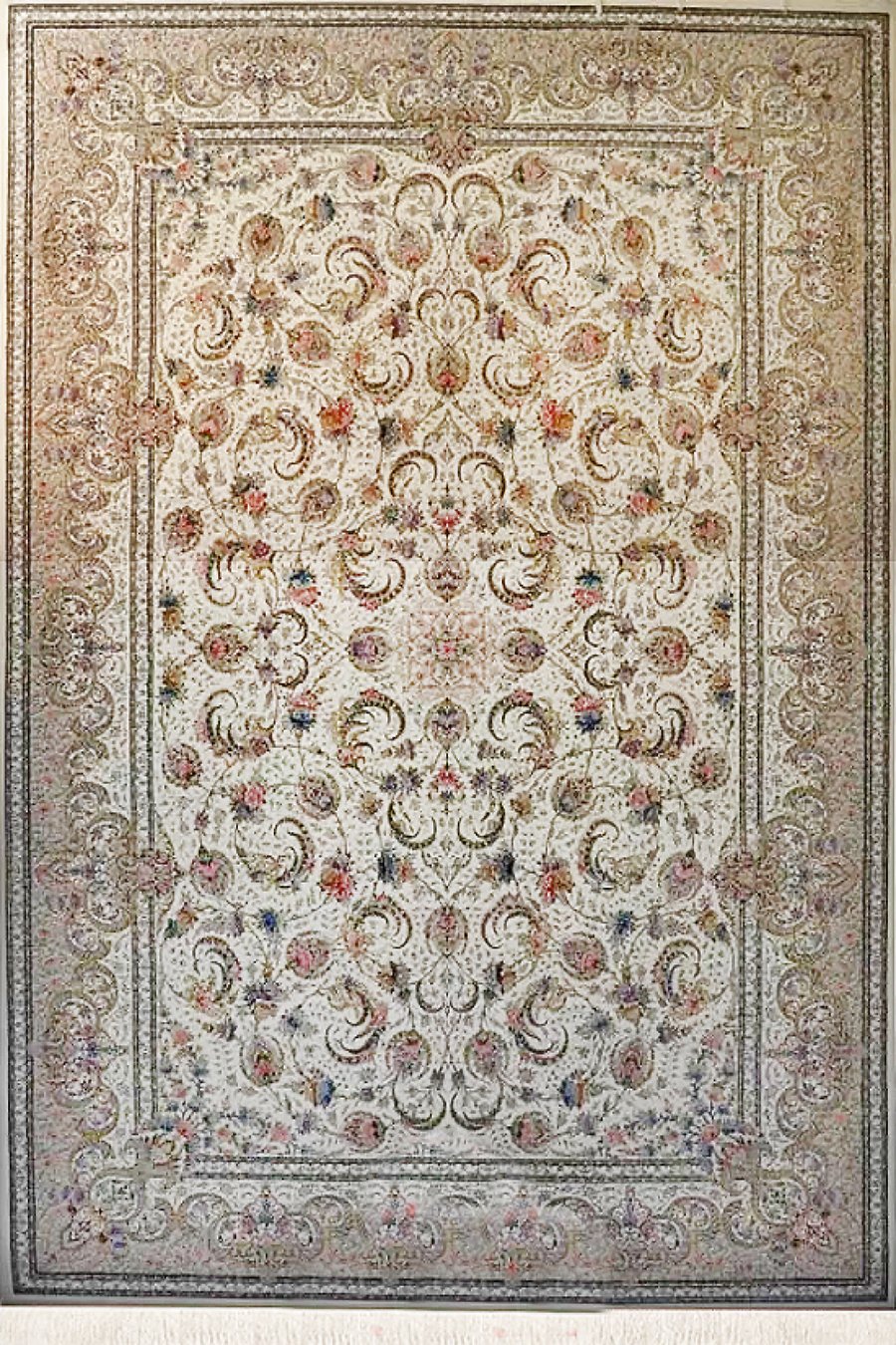 فرش ستاره کویر یزد 1000 شانه کلکسیون نقش جهان کد E40 زمینه 2003 (برجسته)