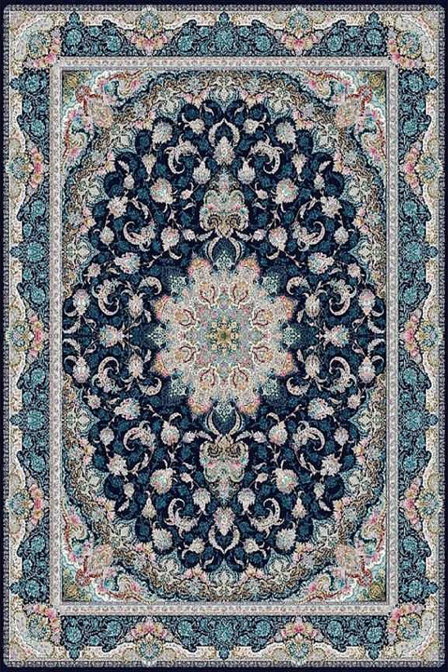 فرش ستاره کویر یزد 1000 شانه کلکسیون نقش جهان کد E41 زمینه 2099 (برجسته)
