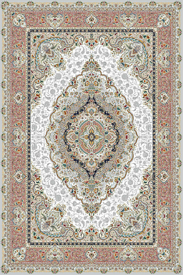 یکی از مهمترین دلایل محبوبیت این فرش، طراحی چشمنواز و هماهنگی رنگهاست. در این مدل، زمینه 1077 که ترکیبی از رنگهای ملایم و روشن است، جلوهای دلنشین و آرامبخش دارد. این رنگ باعث میشود فضا بزرگتر، دلبازتر و روشنتر به نظر برسد. طرح ترنجدار (گل وسط) از دیرباز یکی از نمادهای اصلی فرش ایرانی بوده است. در این طرح، گل مرکزی یا همان ترنج، در مرکز فرش جای گرفته و اطراف آن را لچکها و نقشمایههای اصیل ایرانی فرا گرفتهاند. در این مدل، ترنج بهصورت برجسته بافته شده تا جلوهای سهبعدی و فاخر به مرکز فرش ببخشد و توجه را به مرکز اتاق جلب کند. رنگهای استفادهشده در این طرح شامل طیفی از طلایی ملایم، بژ، نقرهای روشن، کرم و فیلی است که با هم هماهنگی چشمگیری دارند و با انواع دکوراسیونهای کلاسیک و مدرن سازگارند.