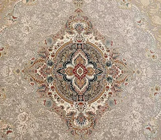 - ترنج مرکزی بسیار چشمگیر طراحی شده و رنگ آن با زمینه فرش بهخوبی هماهنگ شده است.